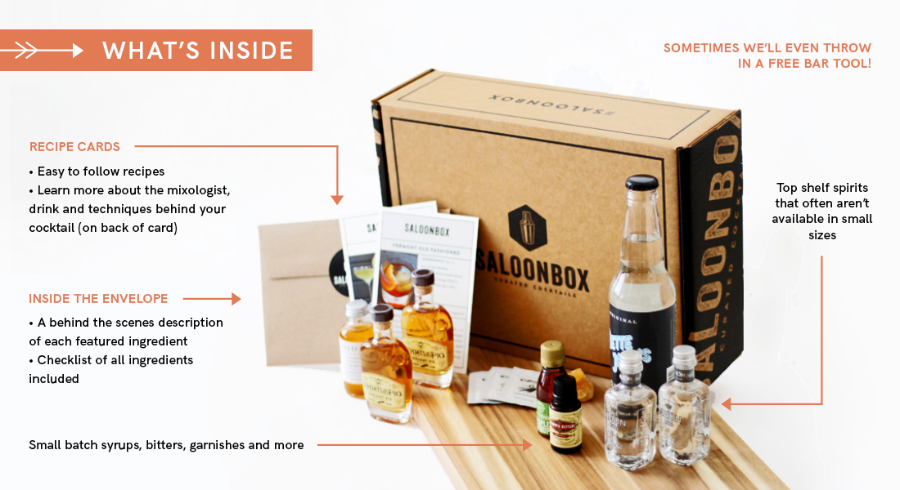 Alcohol subscription boxes are tricky, a lot of them suck and many booze subscription services don't actually send alcohol (just mixers and garnishes). The crafty wife and husband team came up with the idea to start SaloonBox after many frustrating experiences trying to recreate craft cocktails at home. Each monthly kit hooks you up with two curated cocktails including the spirits, non-perishable ingredients and instructions on how to make them. Another quick tip, their blog also has many, many delicious recipes!
